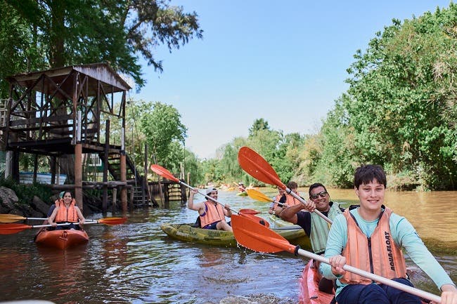 Delta en kayak organiza paseos a remo por la naturaleza y estadía en su isla situada a diez minutos de la ciudad de Tigre. Con más de veinte años de historia, Delta en kayak hoy ofrece variedad de kayaks y canoas, lancha propia de traslado de pasajeros y la isla sobre el río Sarmiento, con playa y restaurante.