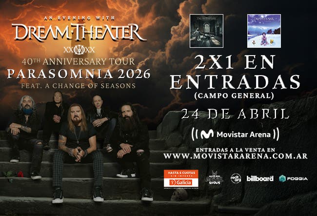 Obtené aquí tu cupón por un 2x1 en la compra de entradas para DREAM THEATER por ser socio de Club LA NACION y canjéalo en la web del Movistar Arena. Única función el viernes 24 de abril a las 21 hs en el Movistar Arena, el beneficio aplica en el Sector Campo.