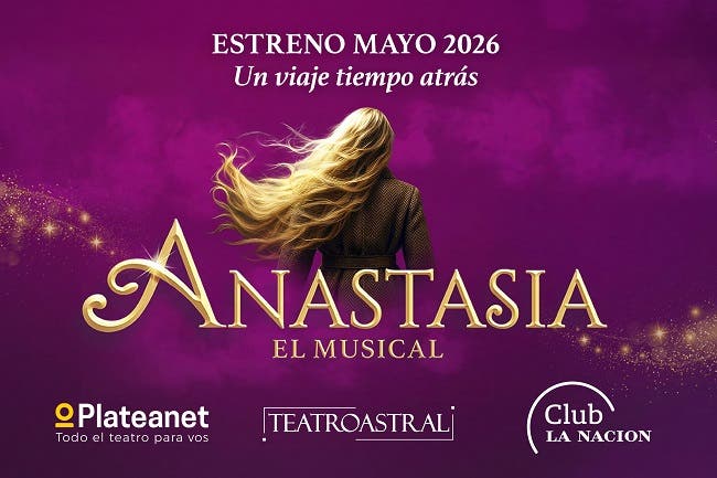 Accede al beneficio para ANASTASIA ingresando tu número de credencial de Club LA NACION en la web del Plateanet. Funciones los martes 20 hs, miércoles 20 hs y sábados 16 hs del 7 de marzo al 2 de agosto en el Teatro Astral.