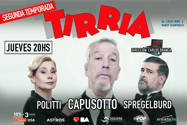 Accede al beneficio para TIRRIA ingresando tu número de credencial de Club LA NACION en la web del Entrada Uno. Funciones los jueves a las 20 hs en el Teatro Astros.